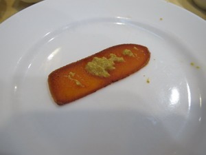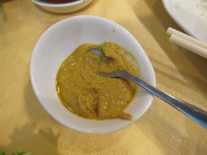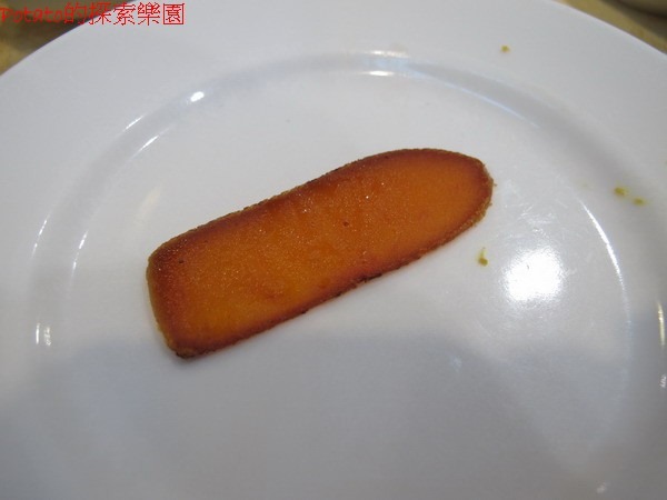 烏魚子配芥茉黃,超讚的。
