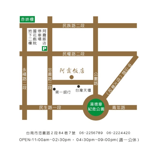 【阿霞飯店】台南市中西區忠義路2段84巷7號。