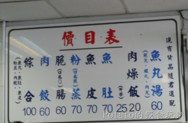 1.價目表–魚丸湯原本50元漲至60元,全部都漲10元,只有肉燥飯沒漲。