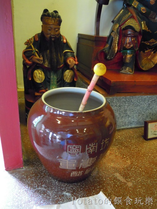 上個月參加台南文資處的『古蹟維護』研習,參訪重慶寺的整修介紹,第一次看見所謂的弘揚『西藏白教密宗』佛法寺廟,還去參拜廟內觀世音菩薩及眾神,好奇地攪拌月下老人的醋酐,順時鐘三圈祈求『百年好合』,逆時鐘三圈祈求『回心轉意』。