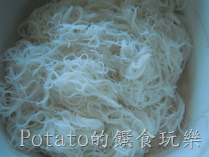 1.米粉先汆燙後備用,紅蔥頭肉燥預先煮好的。