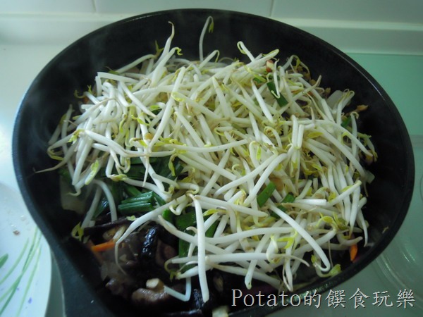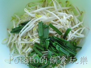 5.最後放入豆芽菜和韭菜,保持豆芽菜的脆度。