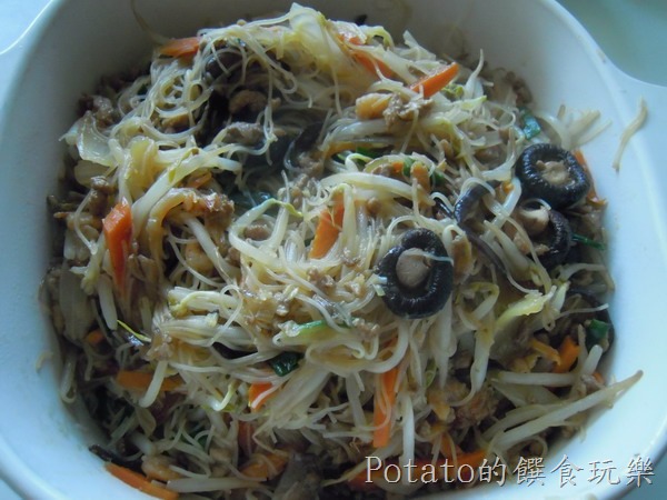 我的什錦炒米粉的做法:就是把你喜歡的料,都放進去炒,像我就會放肉燥、蝦米、香菇、洋蔥、豆芽菜放入去,變成豐富美味的炒米粉。