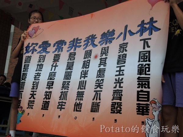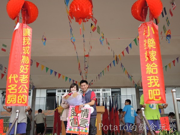 今年建興國中45校慶運動會,開幕高潮驚喜就是教學吳組長愛情宣誓,要向相戀3年的女友求婚;大家加油集氣,敲鑼打鼓全力配合,還有學生加油團,在大家簇擁歡樂下,男主角大聲地說:『小樂嫁給我吧,讓我成為好老公的代名詞。』,女主角說:『我願意』,劃下一個完美的end。