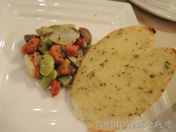 這個是點義大利麵套餐369元的麵包和前菜。