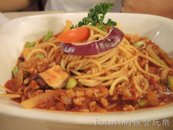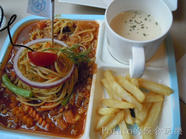 1.以前寶貝弟是吃兒童餐–義大利肉醬麵套餐。