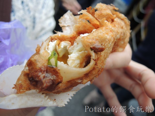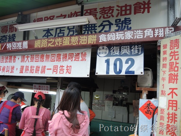 來花蓮一定要吃的『炸彈蔥油餅』在復興街,你分得出來哪一家是正老牌的炸蛋蔥油餅嗎?黃車和藍車哪一個比較好吃呢?我覺得各有千秋,我比較喜歡黃車(復興街102號)的炸蛋蔥油餅,純粹是Potato 的個人喜好。