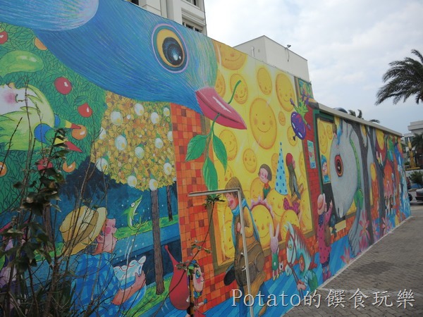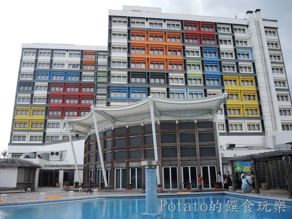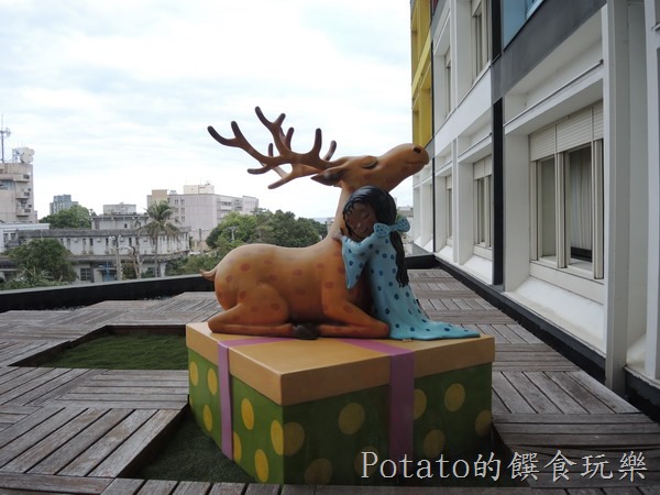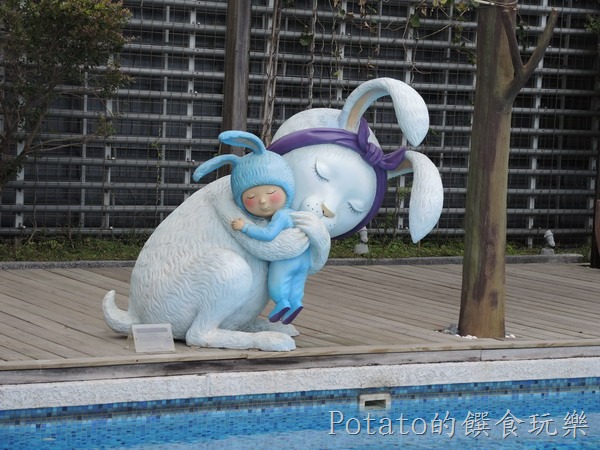 選擇翰品酒店是偶然,網路訂房後才知道『花蓮翰品酒店』有幾米作品,我和馬吉學姊是幾米控,入住飯店後更是瘋狂地猛拍照;聽飯店人員說和繪本畫家幾米合作是2013年七月,以『擁抱』為主題:盡情擁抱–陽光‧空氣‧花和水,每幅作品都充滿了愛的擁抱。從花蓮翰品酒店後方游泳池的方向看酒店的外牆,也同樣用了蒙德理安(Mondrian)的幾何形彩色色塊,喜愛幾米的人,一定會喜歡『花蓮翰品酒店』。