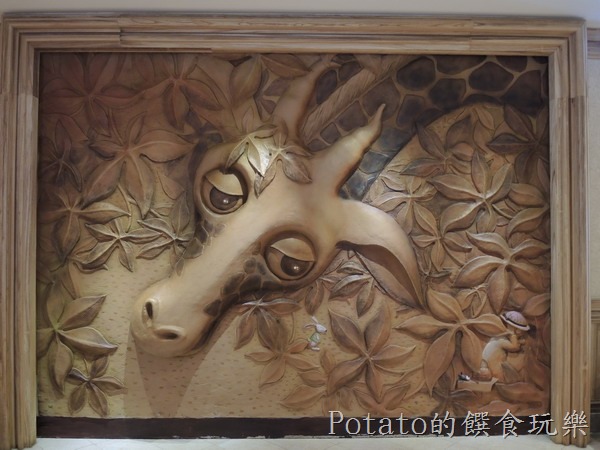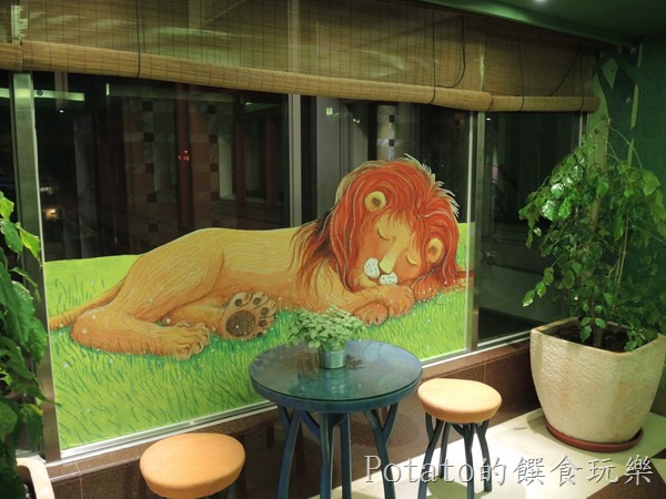 4.七樓是幾米主題客房,電梯前是正在幾米森林睡覺的紅毛獅子。