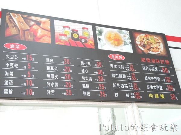 滷菜、辣椒價目表,也有販賣排骨酥、軟骨丼(ㄉㄢˇ)。
