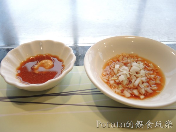 1.左邊是黃芥末,適合沾海鮮料理,右邊是洋蔥末,適合沾肉類料理。
