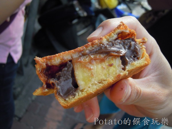 ##1.這是老闆娘請我們這些客人試吃的,有巧克力香蕉和奶油紅豆口味。