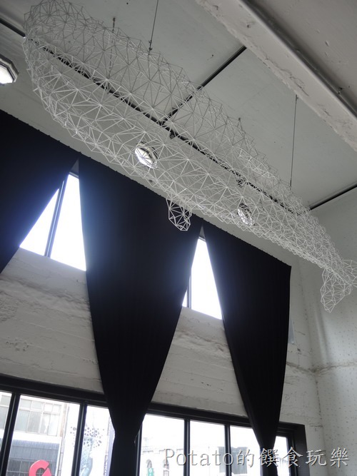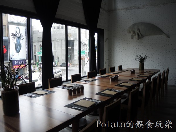 二樓的餐廳部分,有挑高樓層,天花板有一隻白色大鯨魚。