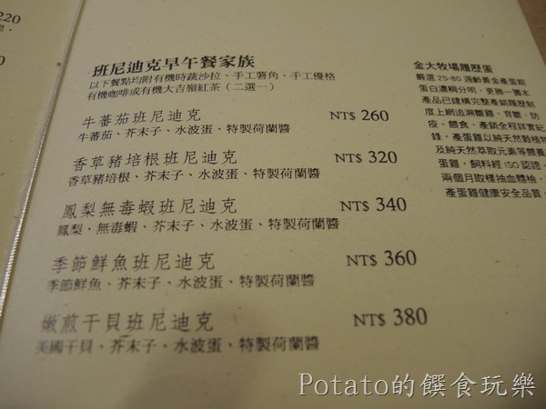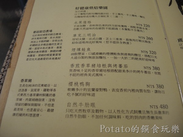 以下早午餐的菜單,我點的餐是屬於早午餐部分-櫻桃鴨胸NT380元。