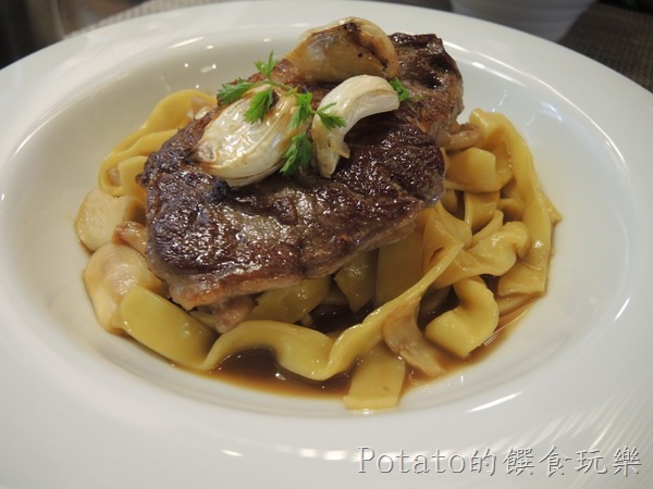 蒜味肋眼寬扁麵NT500元,朋友說非常好吃。