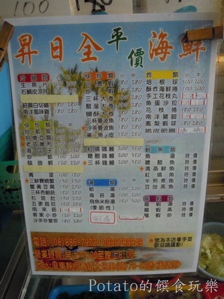 每年來墾丁後壁湖玩,一定要來《昇日全海鮮》吃便宜又新鮮的海鮮,昇日全海鮮就在後壁湖旁,大光路75-93號,我覺得下次到後壁湖吃海鮮,一定會再光顧的店。