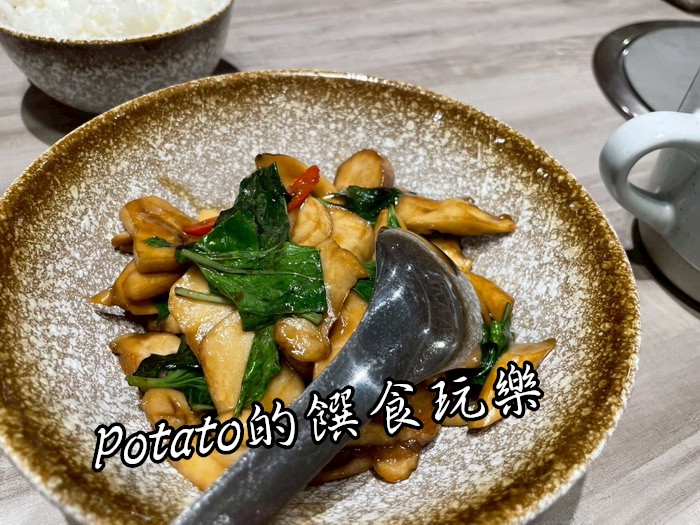 點雲饗蔬食火鍋套餐中的炒食(固定)三杯綜合菇,好吃。