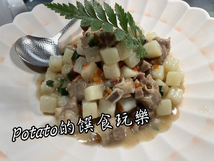 有骨氣的馬鈴薯-就是馬鈴薯丁燉排骨,排骨軟嫩於馬鈴薯中,要小心排骨的碎骨頭,一定要配飯喔。