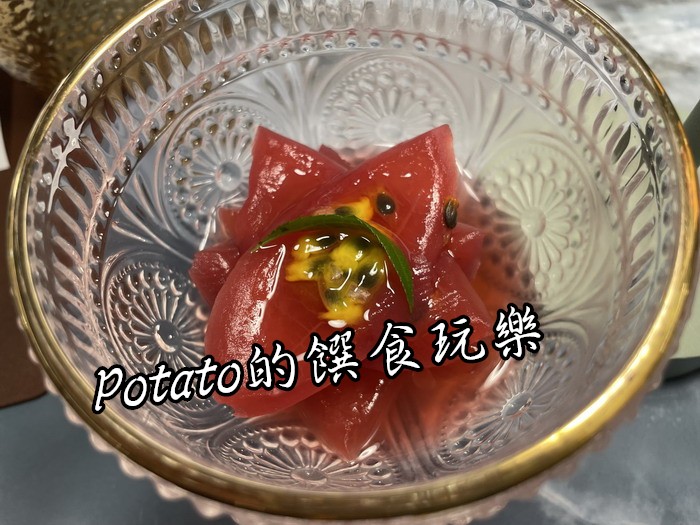 【湘碰杯餐酒沙龍】的菜色蠻多的,可以參考官網,我們點了幾樣菜–口水雞、滑蛋、炒飯等,菜色不錯。開胃小點–火紅熱情果,招待的,酸酸甜甜,真的很開胃。
