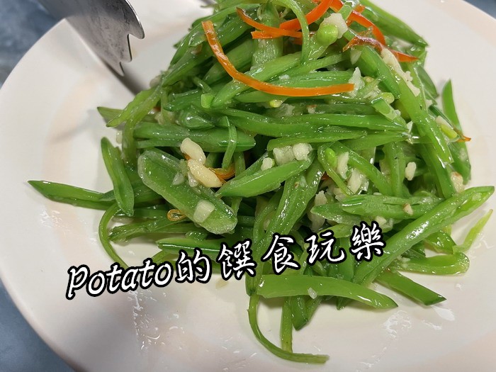 甜豆小清新–用甜豆筴切絲,蒜炒而成的一道菜,清脆可口,令人驚豔的一道菜,真的好吃,吃過的都說讚,必推。