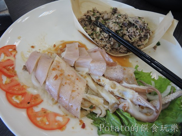 冰管和鮪魚沙拉:冰管肉質非常Q,一點點和風醬提味,讓人一口接一口,嘴巴停不了;鮪魚和香菜是一個美味組合。