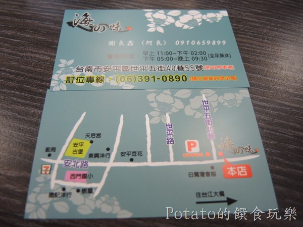 營業地址:台南市安平區世平5街40巷55號(安北路快接近台南海事學校)。