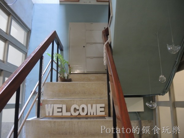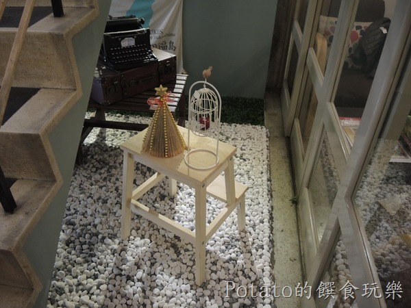 中間是樓梯,下面原本是魚池,老闆把它改成鋪滿白色鵝卵石,一樓是餐廳,二樓是個人工作室,不開放參觀。