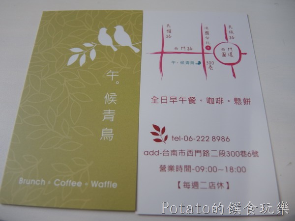 《午。候青鳥》的MENU,有全日早午餐,下午一點後有提供下午茶。