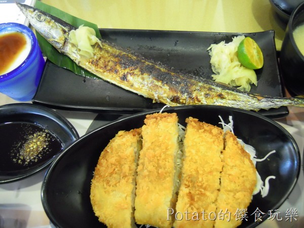 ##4.我的豐味雙盛定食─有炸豬排和烤秋刀魚,也很豐盛美味。