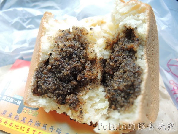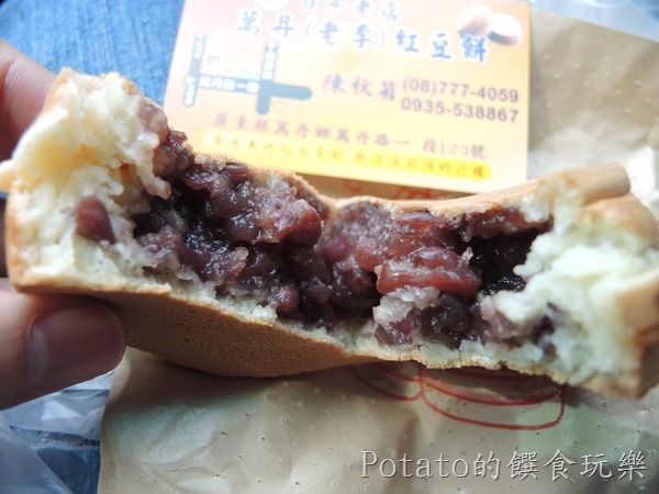 『萬丹老李紅豆餅』的紅豆內餡粒粒分明,比較不甜。