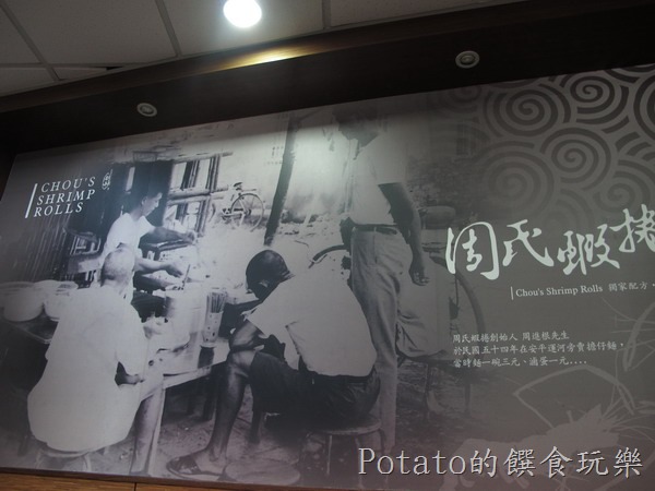 牆上掛著創辦人周進根先生當年在安平運河旁賣擔仔麵的照片。