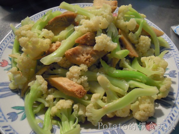 4.清脆又可口的『花椰菜炒猴頭菇』就可以上桌了。