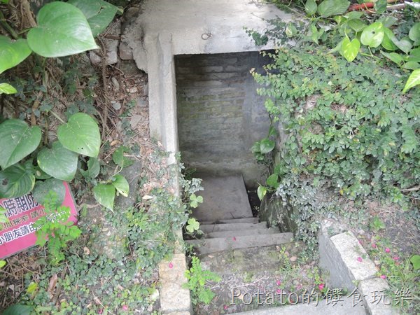 《金湯達人咖啡館》後花園很特別,有自家院子的防空洞,種植很多植物、花卉,還有咖啡座椅,夏天在後花園喝咖啡,蚊蟲比較多。