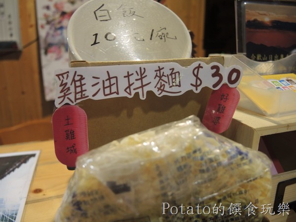 雞油拌麵,NT30,很像泡麵的雞油麵線,麵線很Q、雞油的分量再多一點,麵線香氣會更好,應該是用烤雞滴下來的雞油來拌麵的(我猜的)。