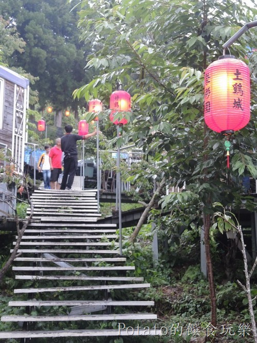 「好雞婆土雞城」白天和晚上有不同風貌,建議傍晚六點來用餐,可以看見紅紅燈籠高高掛,令人流連忘返。