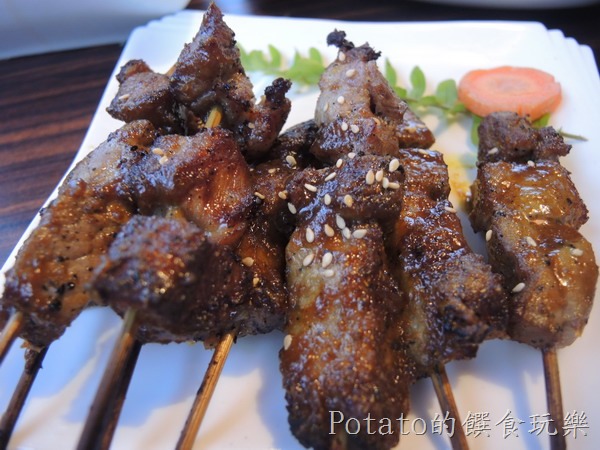 泰式沙嗲燒烤豬肉串(8串),NT250。要趁熱吃,冷掉了就不好吃。