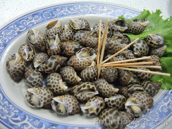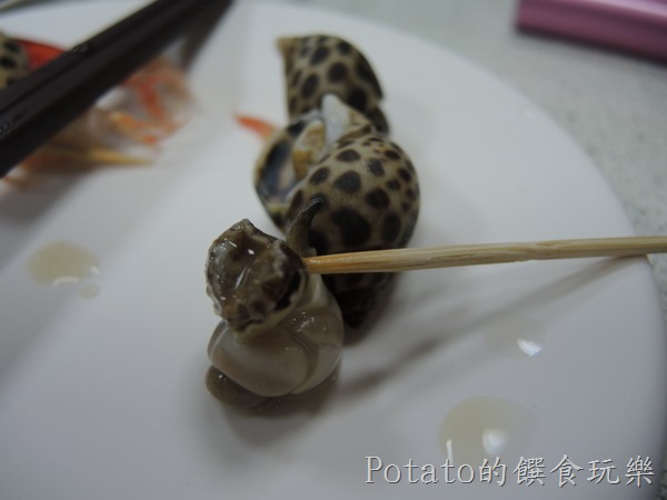 汆燙鳳螺–用牙籤挖出來的螺肉,沾一下醬料,非常好吃。