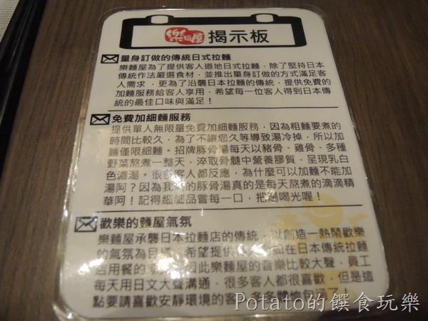 樂麵屋的菜單:在煮麵工作台上,都有標示,當然桌上也有MENU。