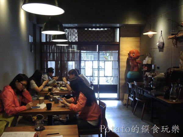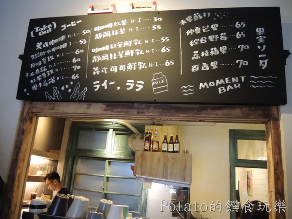 《木門‧朝午洋食MOMENT》不能預約、需現場候位, 店內一樓仍然是前半座位區(約有10人座位)、中後是咖啡飲料吧檯、廚房。