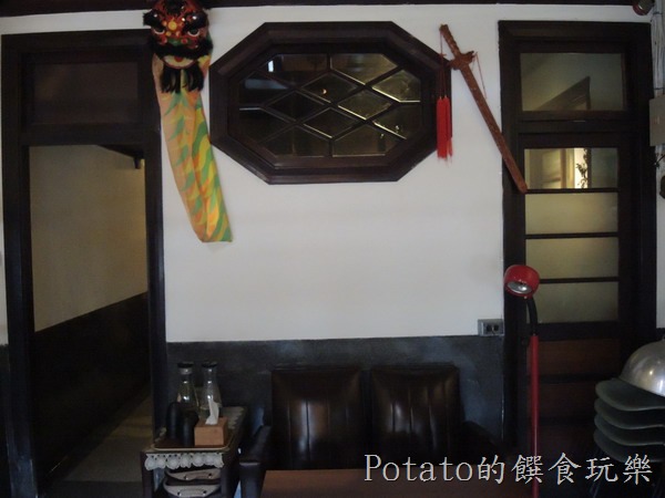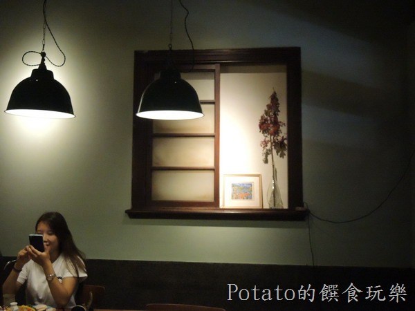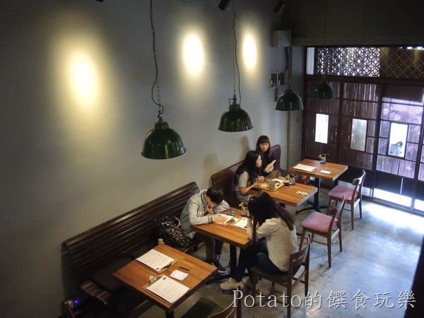《木門‧朝午洋食MOMENT》二樓有兩處座位區,較靠室內的是一大長桌(約6人),靠窗的有長座位區(約4人)跟小沙發(約4人),空間不大、老房子的木窗很漂亮。