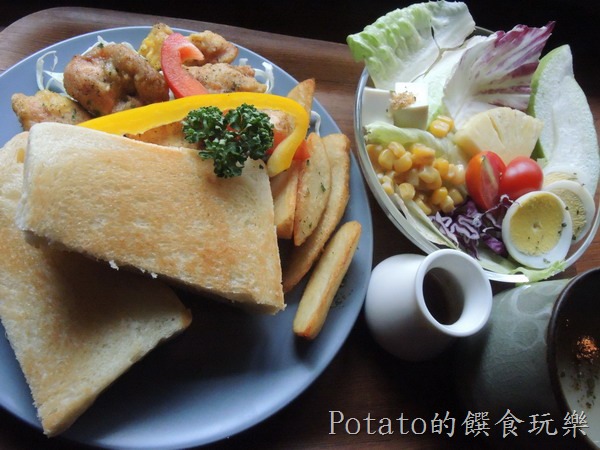 我點的『牛奶土司+椒鹽唐揚炸雞』$230元,椒鹽唐揚炸雞的雞肉外酥內軟,有特殊的香料製作,很對我的味,CP值高。