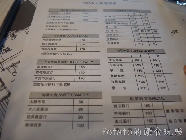 YANA人拿咖啡的菜單:最低消費120元,有點不親民。