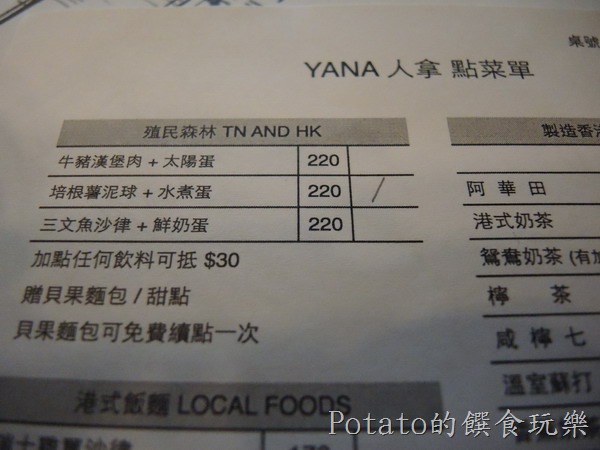 YANA人拿咖啡餐點:殖民森林(英式早午餐)、港式飯麵