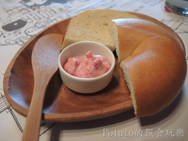 貝果麵包–可以免費續點一次,我喜歡貝果的扎實感,抹上苺果醬更好吃。