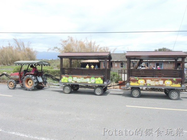 參加老爺公司的員工旅遊,第一站就來『新南休閒農業區』:有炒冰、彩繪風車、搭瓜瓜列車逛古厝、撐竹筏及秧桶船、中午吃瓜瓜風味餐,體驗一下休閒農家樂(雖然Potato 是農家子弟,宜蘭和台南的農作完全不同,體驗不一樣的農村風情)。