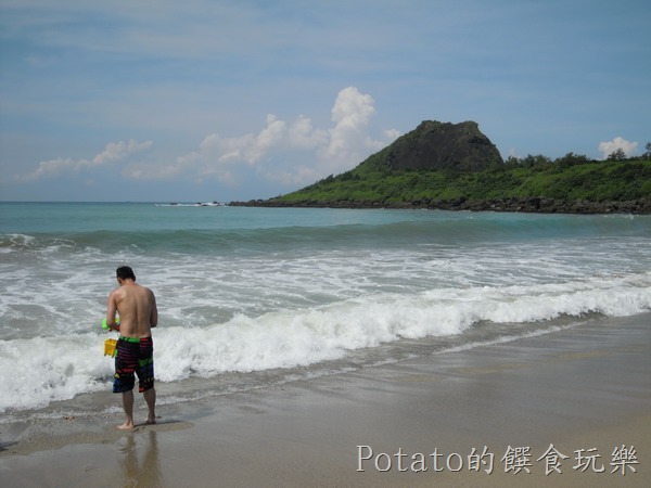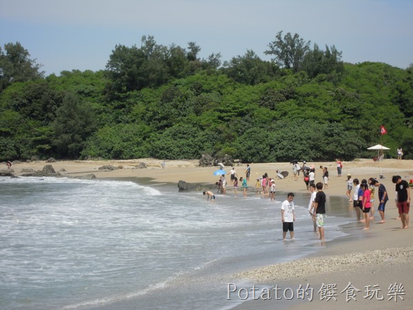 ##小灣的沙灘–雖然插紅旗,不影響玩水的遊客的興致。